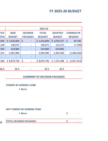EXPLANATION OF CHANGES FROM REQUEST SUMMARY OF DECISION PACKAGES