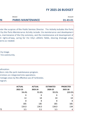 PUBLIC SERVICES PARKS AND RECREATION PARKS MAINTENANCE 01-43-01