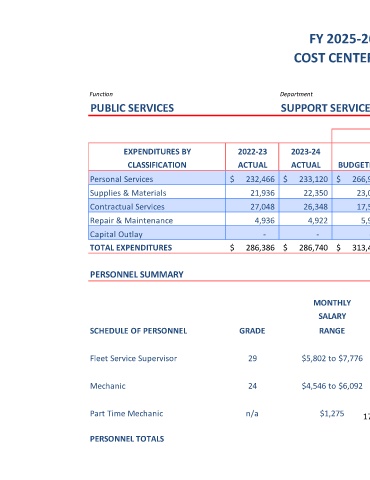 PUBLIC SERVICES SUPPORT SERVICES FLEET MAINTENANCE 01-45-01