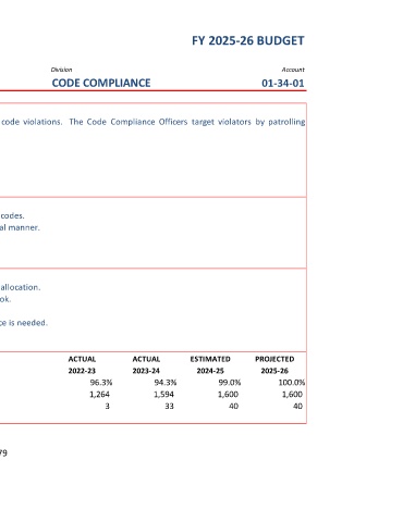The Code Compliance Activity provides the City with the enforcement of all code violations. The Code Compliance Officers target violators by patrolling