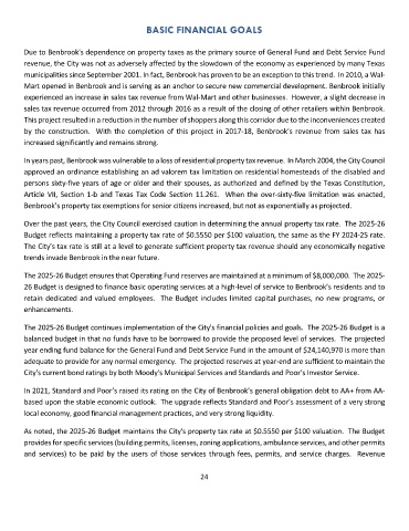 26 Budget is designed to finance basic operating services at a high-level of service to Benbrook’s residents and to