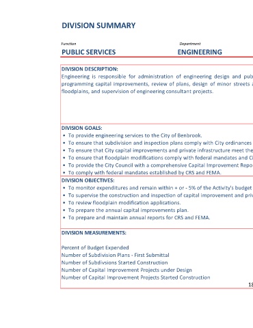 Engineering is responsible for administration of engineering design and public works projects, review of subdivision public improvements, planning and