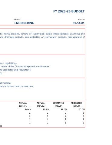 Engineering is responsible for administration of engineering design and public works projects, review of subdivision public improvements, planning and