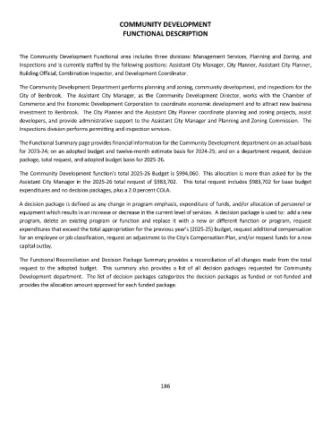 The Community Development Functional area includes three divisions: Management Services, Planning and Zoning, and