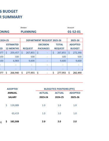 Assistant City Planner 25 $4,774 to $6,397 63,419 1.0 1.0 1.0