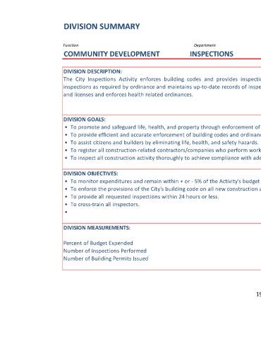 inspections as required by ordinance and maintains up-to-date records of inspections and related information. The Activity issues construction related permits