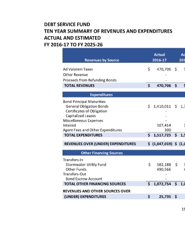 TEN YEAR SUMMARY OF REVENUES AND EXPENDITURES