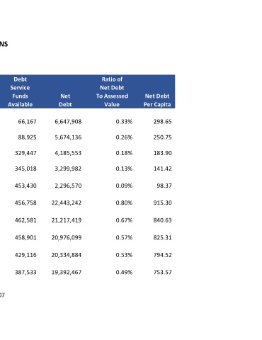 Year Population Value Debt Available Debt Value Per Capita