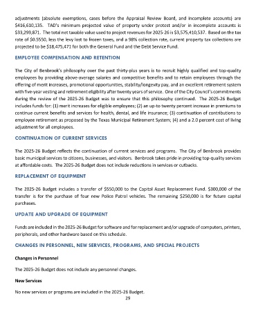 The 2025-26 Budget reflects the continuation of current services and programs. The City of Benbrook provides
