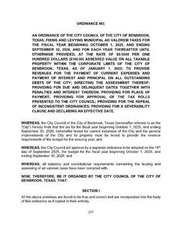 AN ORDINANCE OF THE CITY COUNCIL OF THE CITY OF BENBROOK,