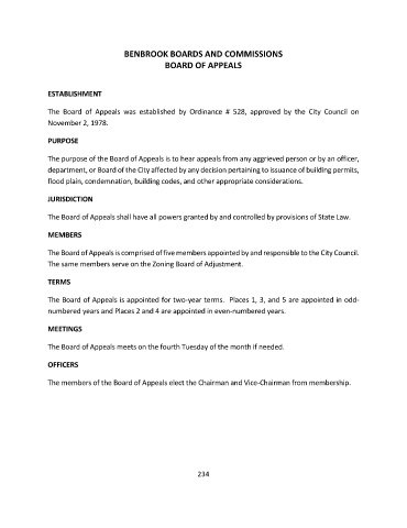 The Board of Appeals was established by Ordinance # 528, approved by the City Council on