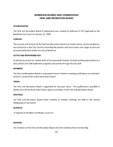 As defined by Article VIII, Section 8.05 of the Home Rule Charter, the Park and Recreation Board is a