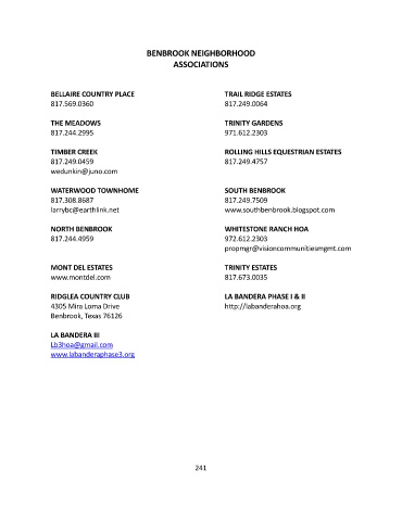 NORTH BENBROOK WHITESTONE RANCH HOA