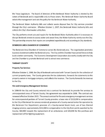 the Texas Legislature. The board of directors of the Benbrook Water Authority is elected by the