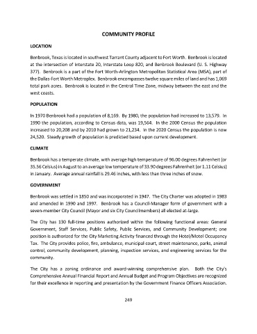 377). Benbrook is a part of the Fort Worth-Arlington Metropolitan Statistical Area (MSA), part of