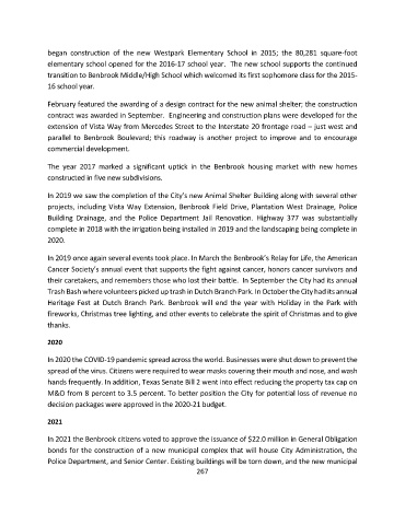 began construction of the new Westpark Elementary School in 2015; the 80,281 square-foot