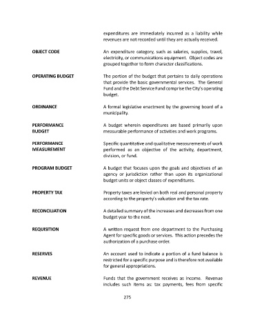OBJECT CODE An expenditure category, such as salaries, supplies, travel,