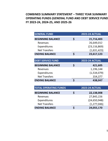 TOTAL OPERATING FUNDS 2023-24 ACTUAL 2024-25 ESTIMATED 2025-26 PROJECTED