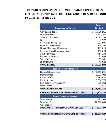 TEN YEAR COMPARISON OF REVENUES AND EXPENDITURES