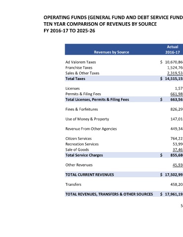 TOTAL REVENUES, TRANSFERS & OTHER SOURCES $ 17,961,195 $ 19,614,885 $ 21,366,487 $ 22,555,410 $ 23,864,391