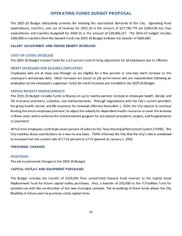 The 2025-26 Budget adequately provides for meeting the operational demands of the City. Operating Fund