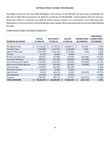 Operating revenues in the City's 2025-26 Budget in the amount of $27,802,265 are based upon a projected net