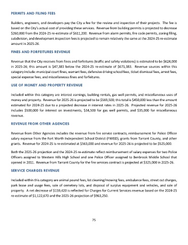 based on the City’s actual cost of providing these services. Revenue from building permits is projected to decrease