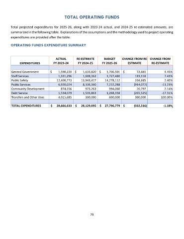 OPERATING FUNDS EXPENDITURE SUMMARY