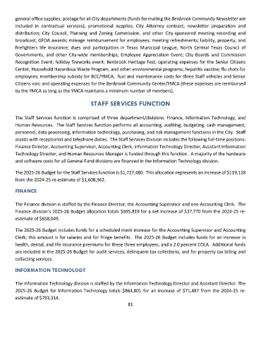 personnel, data processing, information technology, purchasing, and risk management functions in the City. Staff