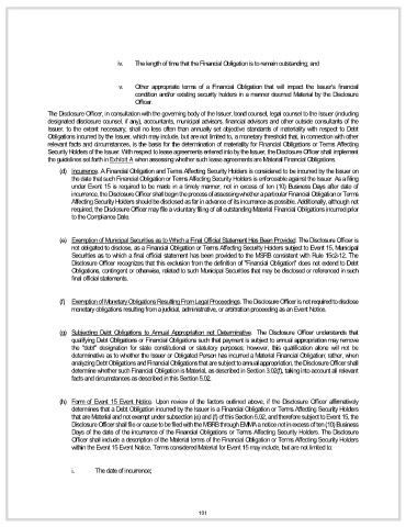 v. Other appropriate terms of a Financial Obligation that will impact the Issuer's financial
