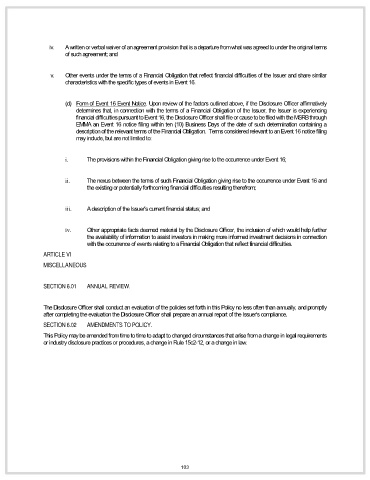 (d) Form of Event 16 Event Notice. Upon review of the factors outlined above, if the Disclosure Officer affirmatively