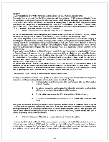 lease as operating leases will not rise to the level of a Financial Obligation under Event 15 of Rule 15c2-12.