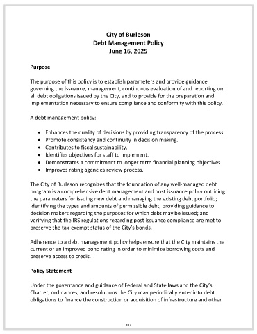 The City of Burleson recognizes that the foundation of any well-managed debt