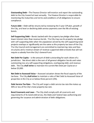 debt. The City shall strive to maintain the current Net Debt per Capita at or