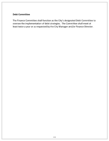 The Finance Committee shall function as the City’s designated Debt Committee to