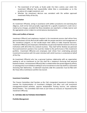 Investment Officer(s) and employees involved in the investment process shall refrain from