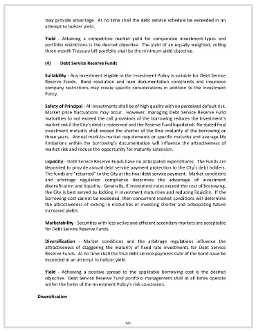 objective. Debt Service Reserve Fund portfolio management shall at all times operate