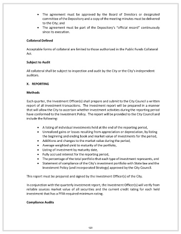have conformed to the Investment Policy. The report will be provided to the City Council and