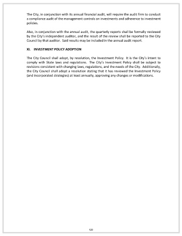The City Council shall adopt, by resolution, the Investment Policy. It is the City’s intent to
