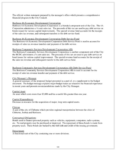 Burleson 4A Economic Development Corporation is a blended component unit of the City. The 4A