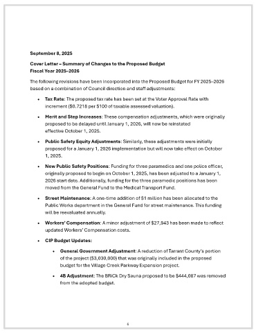 The following revisions have been incorporated into the Proposed Budget for FY 2025–2026