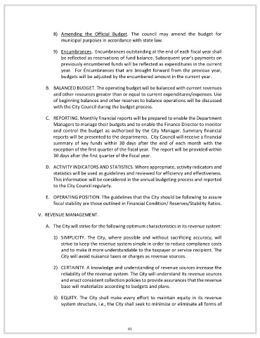 E. OPERATING POSITION. The guidelines that the City should be following to assure