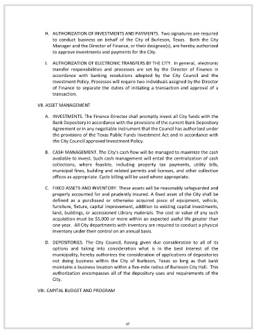 I. AUTHORIZATION OF ELECTRONIC TRANSFERS BY THE CITY. In general, electronic