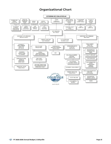 Organizational Chart FY 2025-2026 Annual Budget | Colleyville Page 21