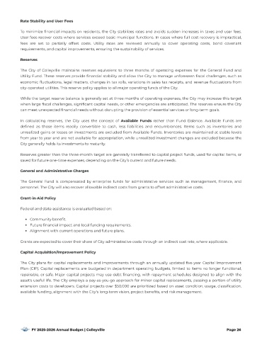 Utility Fund. These reser ves provide {nancial stability and allow the City to manage unforeseen {scal challenges, such as
