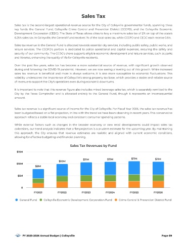 Sales tax revenue is a signi{cant source of income for the City of Colleyville. For Fiscal Year 2026 , the sales tax revenue has