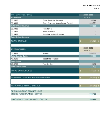 141 | CIP STREET FUND 2022–2023 2023–2024 2024–2025 2025–2026
