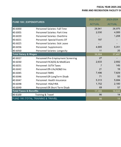 FUND 180 |TOTAL TRAINING & TRAVEL 86 14 $ 175 175 0.0%