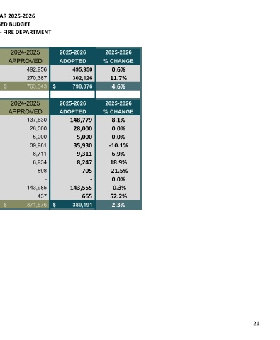 55 | FIRE ACTUAL ACTUAL APPROVED ADOPTED % CHANGE