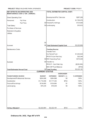 PROJECT TITLE: WILSHIRE PARK UPGRADES PROJECT CODE: PR2011